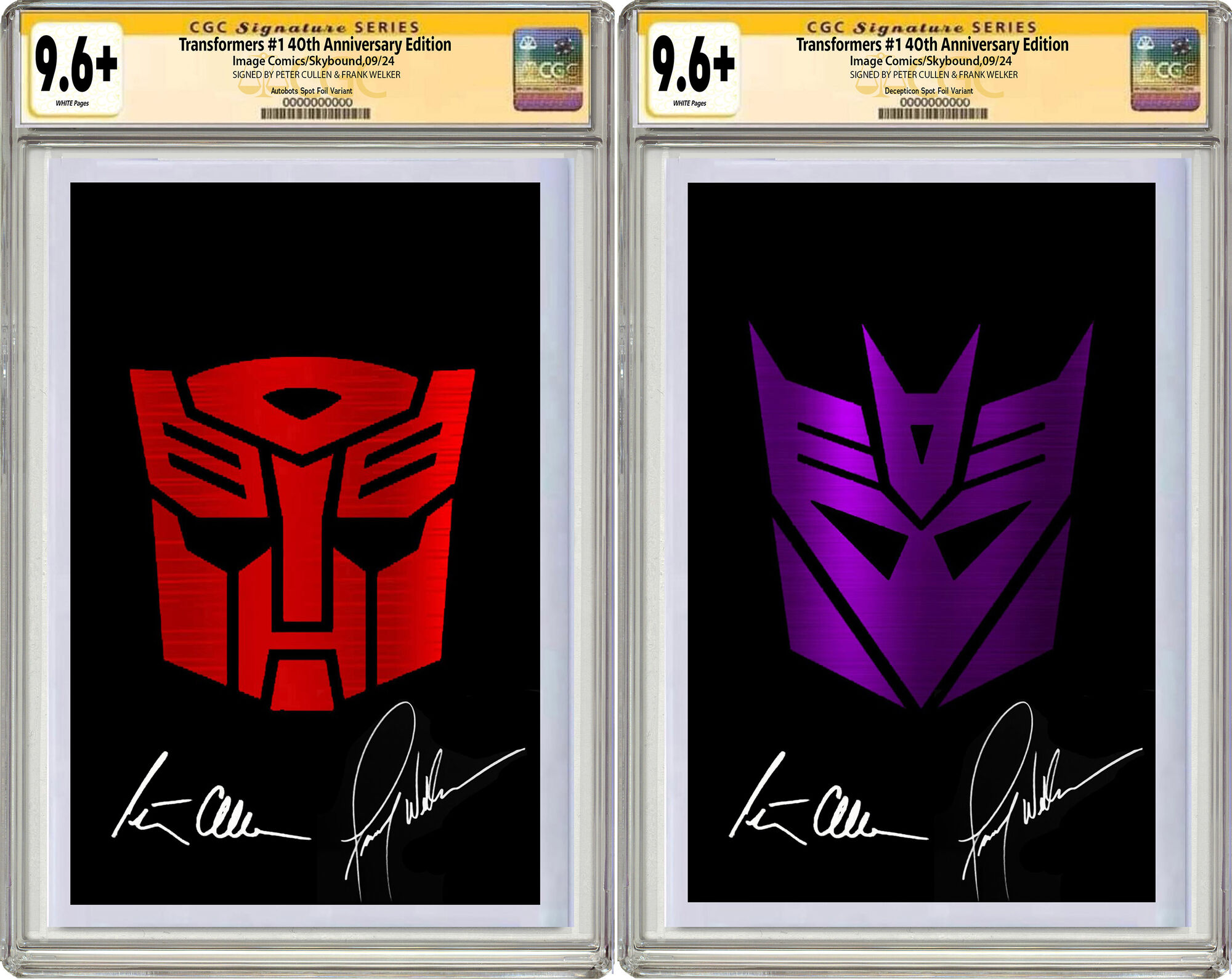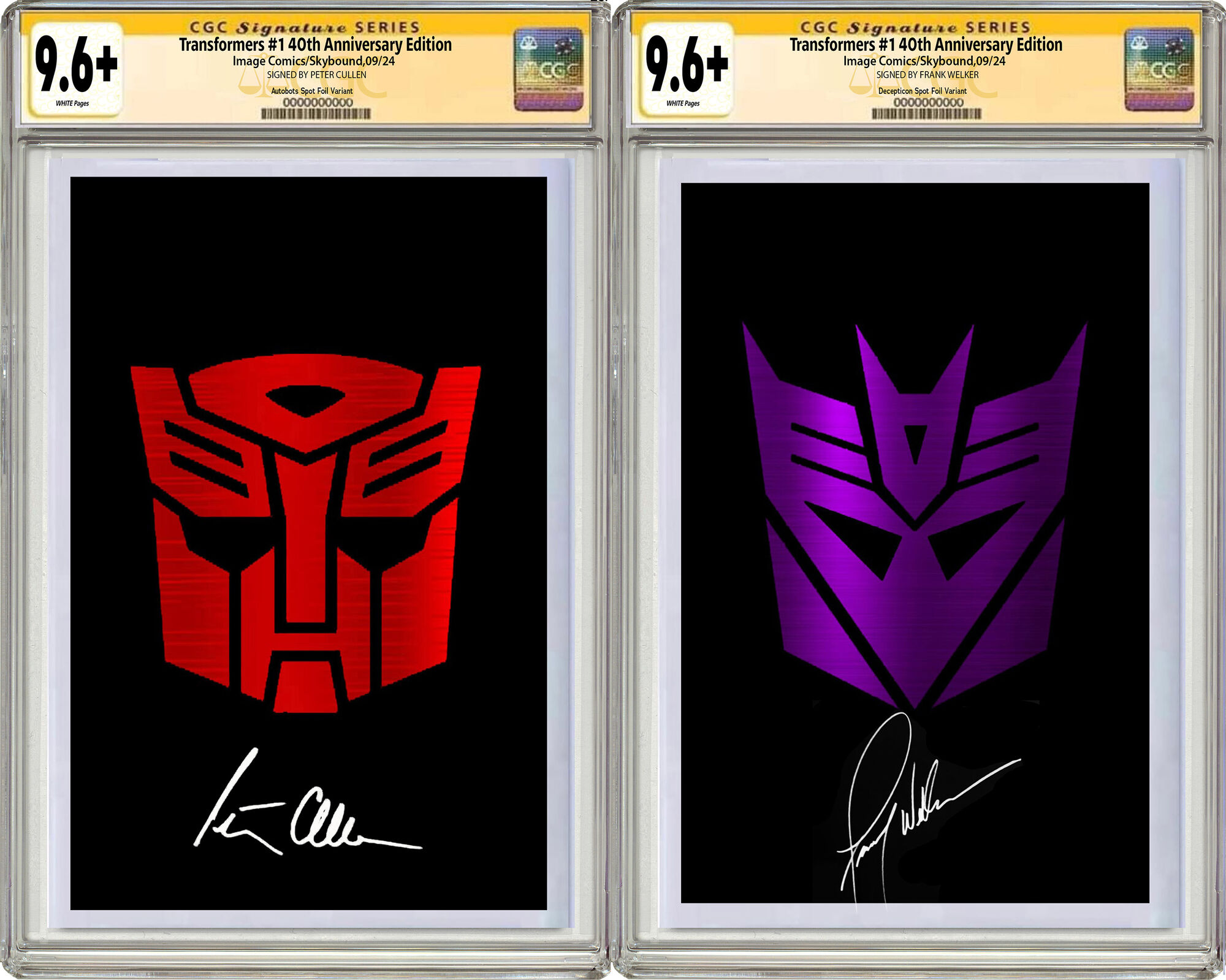 AUTOBOTS OR DECEPTICONS LOGO FOIL VARIANT COVER SIGNED BY BOTH PETER CULLEN & FRANK WELKER $349.99 EACH